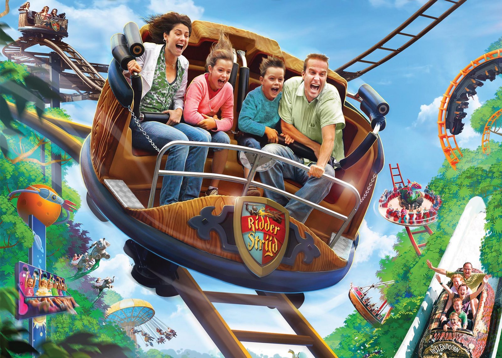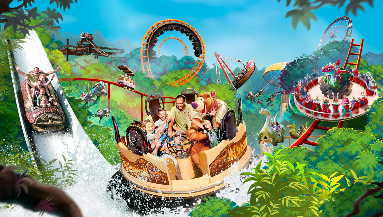 Samen spetterende waterpret beleven in één van de wildwaterbanen: Wild Waterval of Sungai Kalimantan? Of razendsnel in één van de achtbanen: de Balagos, de Donderstenen of de Rioolrat? Of achterover zitten en samen genieten van de familieshow van Kareltje & Jasmijn? Avonturenpark Hellendoorn is een echt familiepretpark. De sfeer is gemoedelijk, afstanden tussen de attracties zijn klein en wachttijden voor attracties zijn kort.